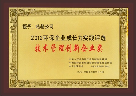 哈希公司喜獲2012環(huán)保企業(yè)成長(zhǎng)力實(shí)踐評(píng)選技術(shù)管理創(chuàng)新企業(yè)獎(jiǎng)