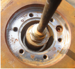 客戶處一直抱怨SONATAX sc漏水的問題,其實探頭本身是IP68的防護(hù)等級,綜合隊客戶現(xiàn)場的考察,發(fā)現(xiàn)漏水點易發(fā)生于安裝支架與探頭接口處(圖5)。一些客戶在該處并沒有安裝O型密封圈墊。如果客戶不方便安裝O型密封圈墊的話,可以建議在該處打上密封膠,來防止水分侵入。