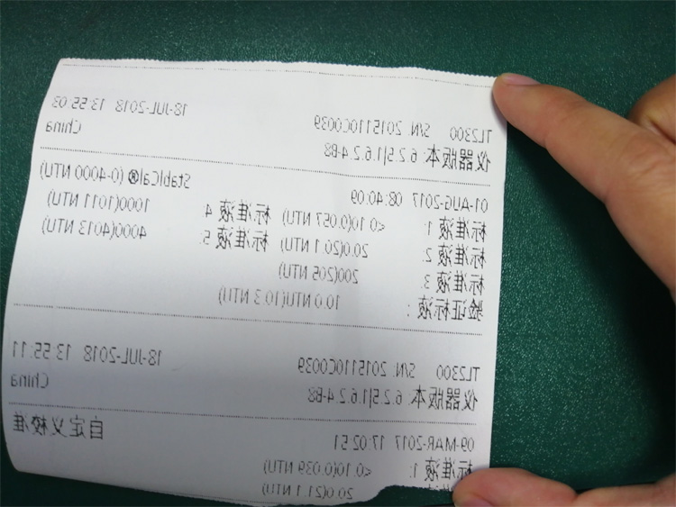 客戶要咨詢TL2300濁度儀密碼設置權限,及打印機鏈接后,打印出來的格式,剛好維修中有3Q認證的儀器和打印機,就跟儀器連接上,操作了,并錄視頻拍照給客戶